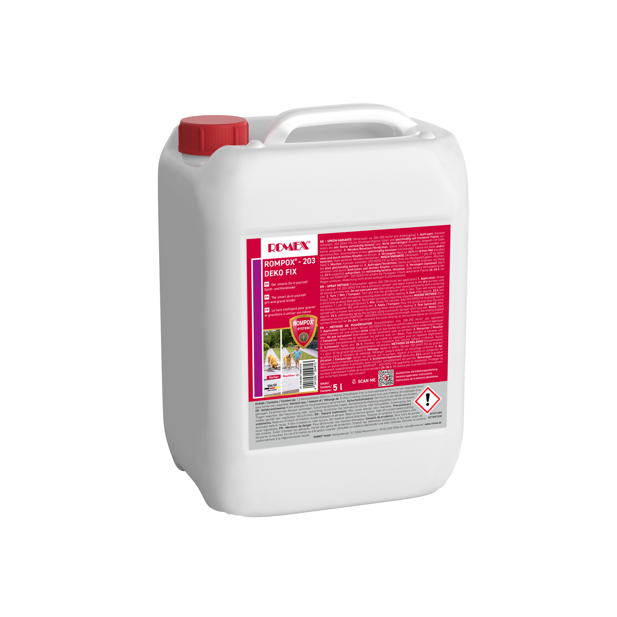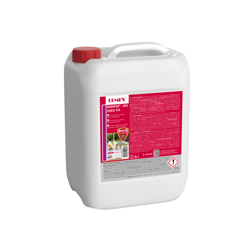 203 Deko Fix — gudrais saistvielas risinājums grantij un šķembām, paredzēts darbu veikšanai pašu spēkiem (DIY).