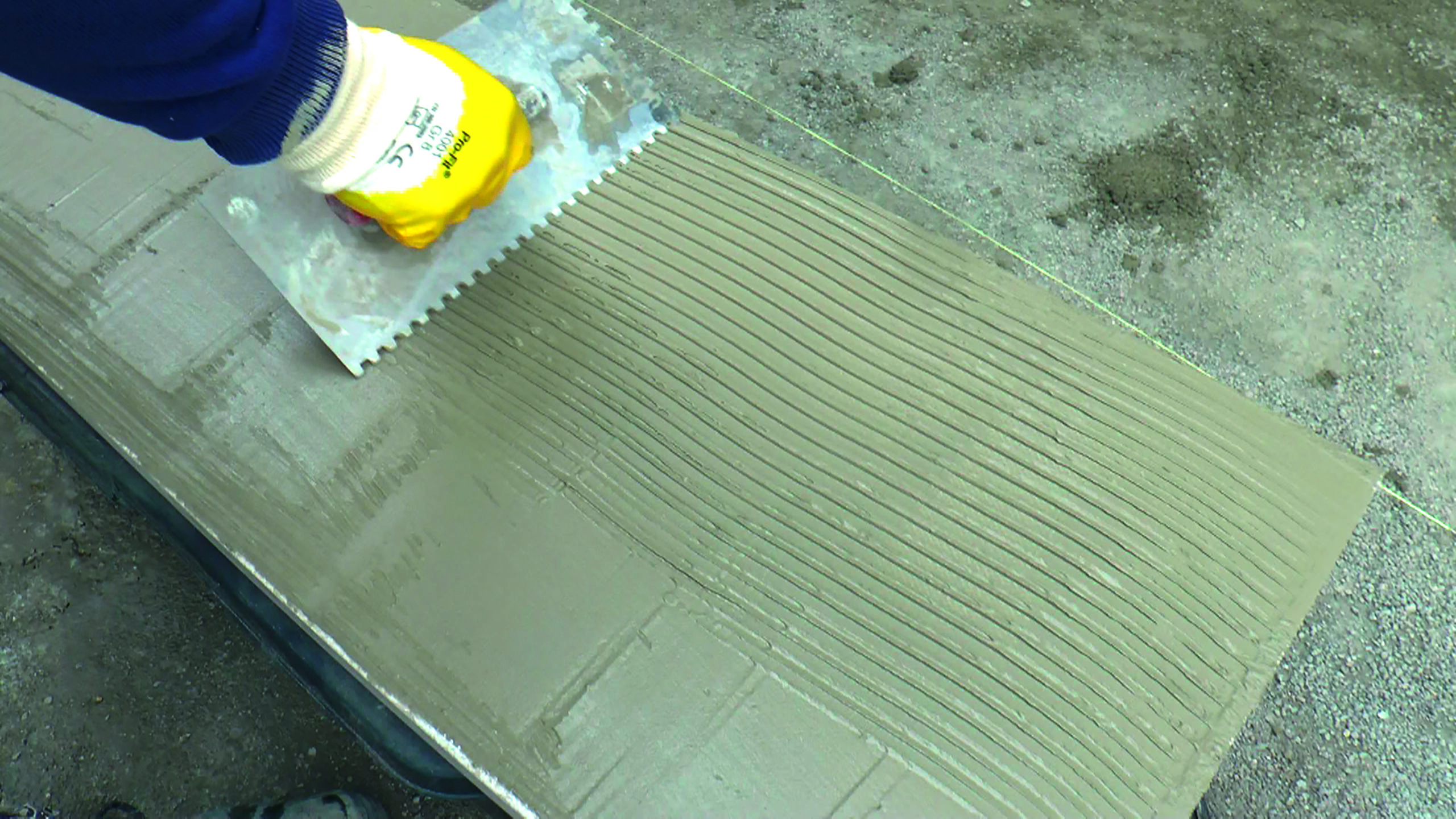 - līmējošais slānis dabīgā un betona akmens plātņu savienošanai ar Romex® – Trass Bed