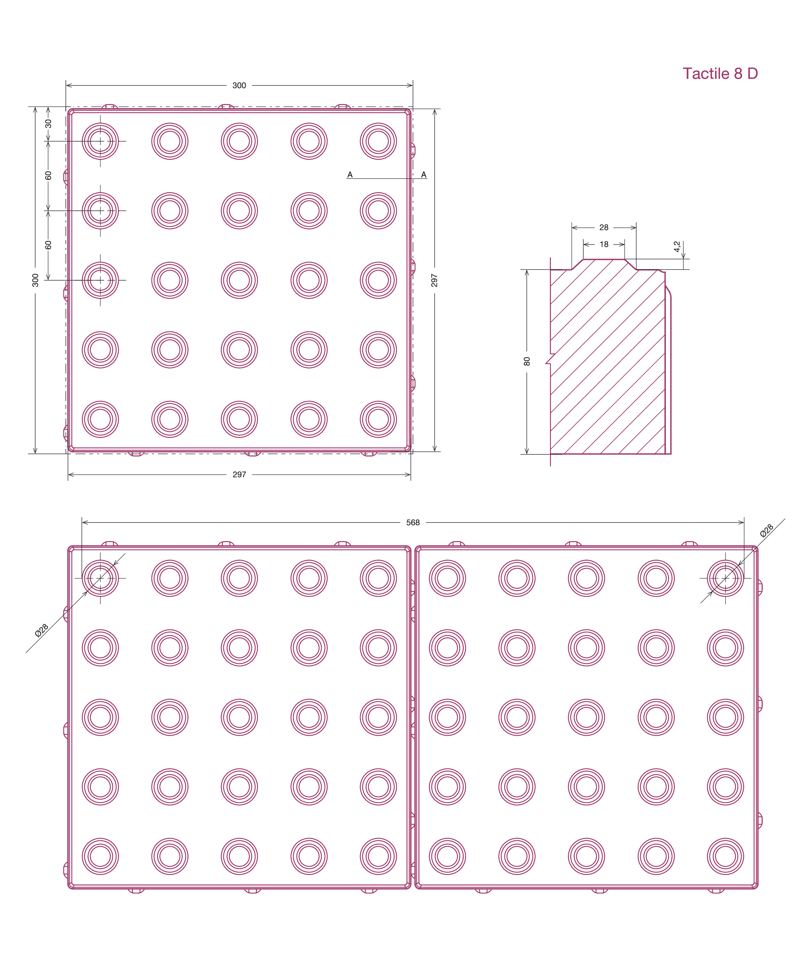 Tactile 8D – paredzēts publisko telpu: laukumu, celiņu, ietvju un līdzīgas nozīmes zonu labiekārtošanai. Kopā ar to tiek izmantots produkts Tactile 8L. Lieliski sader ar 8 cm augstiem produktiem, kas paredzēti publiskajām telpām: Hansa flīzēm (piemēram, Hansa 8, Hansa 8 Plus, Hansa 8 Mega), Plaza līnijas produktiem (Plaza 2×2, Plaza 4×2, Plaza 6×2, Plaza 6×4), kā arī parastajiem Prizma produktiem.