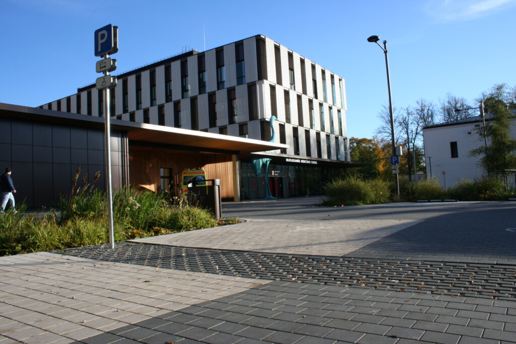 Ambulatorā centra priekšlaukums veidots tā, lai uzsvērtu jauno galveno ieeju, atvieglojot pacientiem un apmeklētājiem orientēšanos plašajā slimnīcas teritorijā.