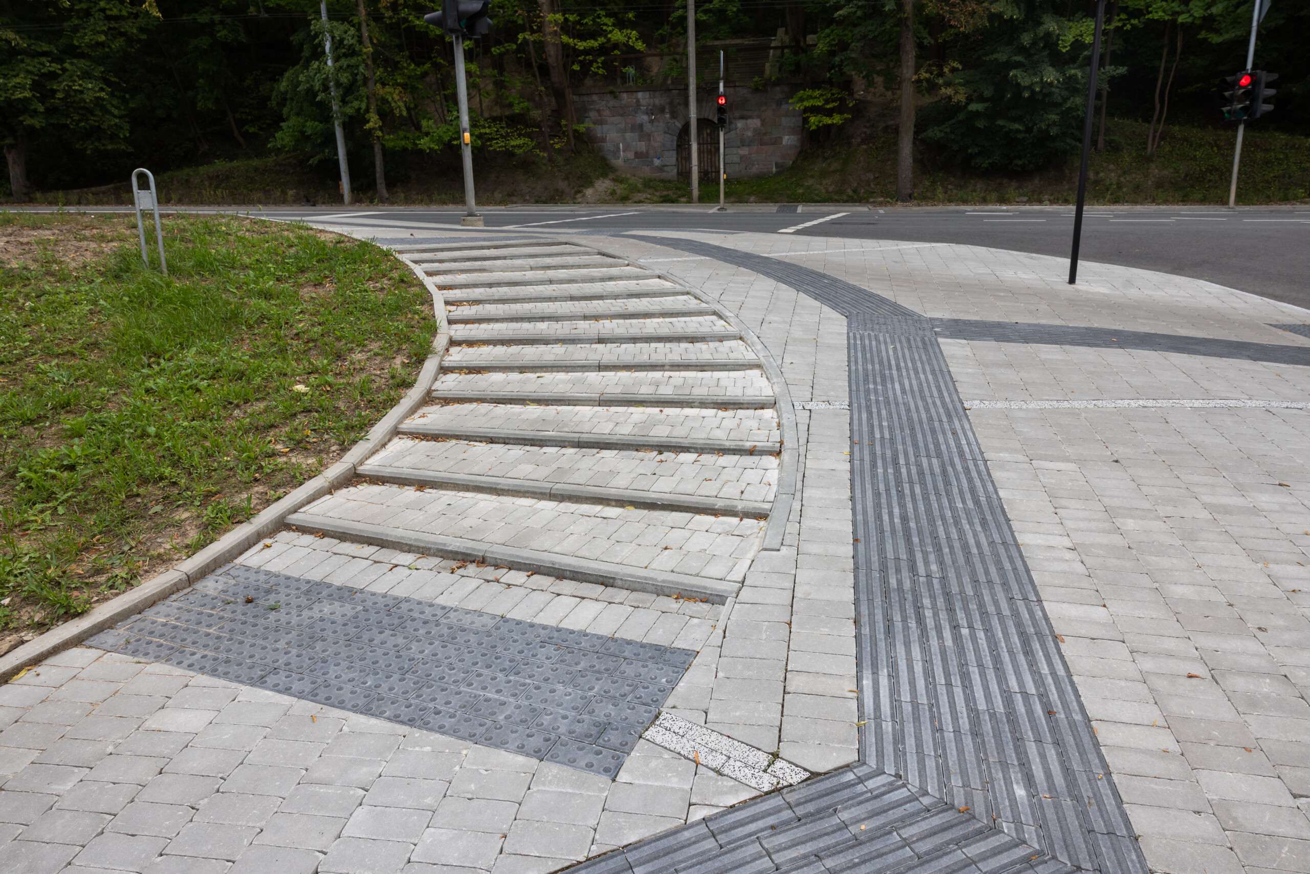 Projektā izmantoti arī jau ierastās zāliena apmales un taktīlie izstrādājumi.