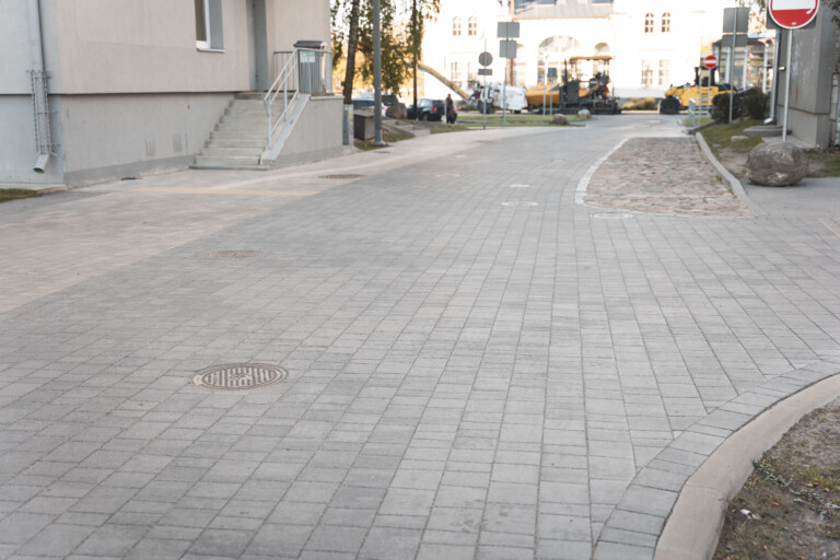 Ielas braucamā daļā un gājēju zonās izmantota mozaīka Nord 8 Set, kas ir ne tikai izturīga pret auto transporta slodzēm, bet arī rada vienotu un mūsdienīgu virsmu. Lai vizuāli atdalītu dažādas ielas zonas, tika izvēlēti divi ColorMix toņi – Granit un Moon antracit. Šie toņi ir pietiekami līdzīgi, lai radītu harmonisku kopskatu, bet vienlaikus pietiekami atšķirīgi, lai skaidri norādītu uz dažādu zonu funkcionalitāti. Šis risinājums ne tikai uzlabo ielas estētiku, bet arī padara to drošāku un ērtāku gan gājējiem, gan autovadītājiem.