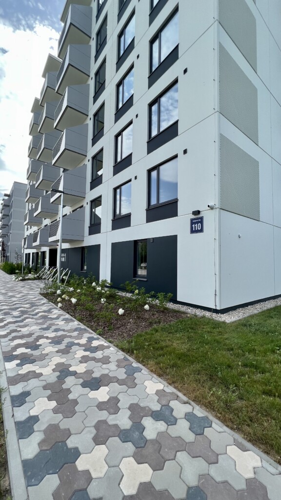 Silvas Nami projekts Latvijā lepojas ar ekskluzīvu, rotaļīgu pagalmu. Terases bruģēšanai izmantoti Astra produkti, un krāsu izvēle rada jautru un pievilcīgu vidi.