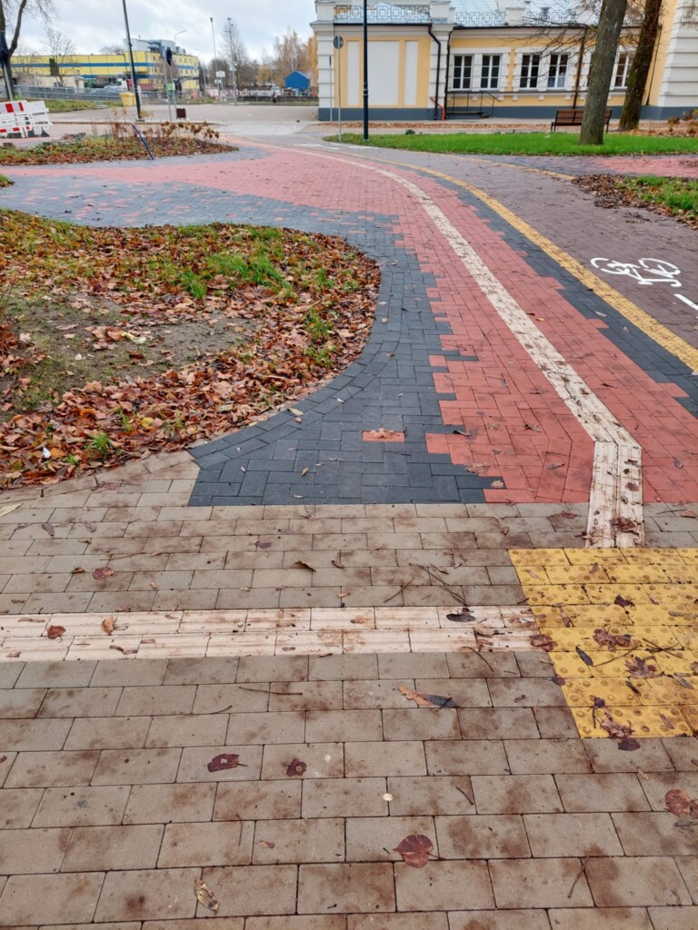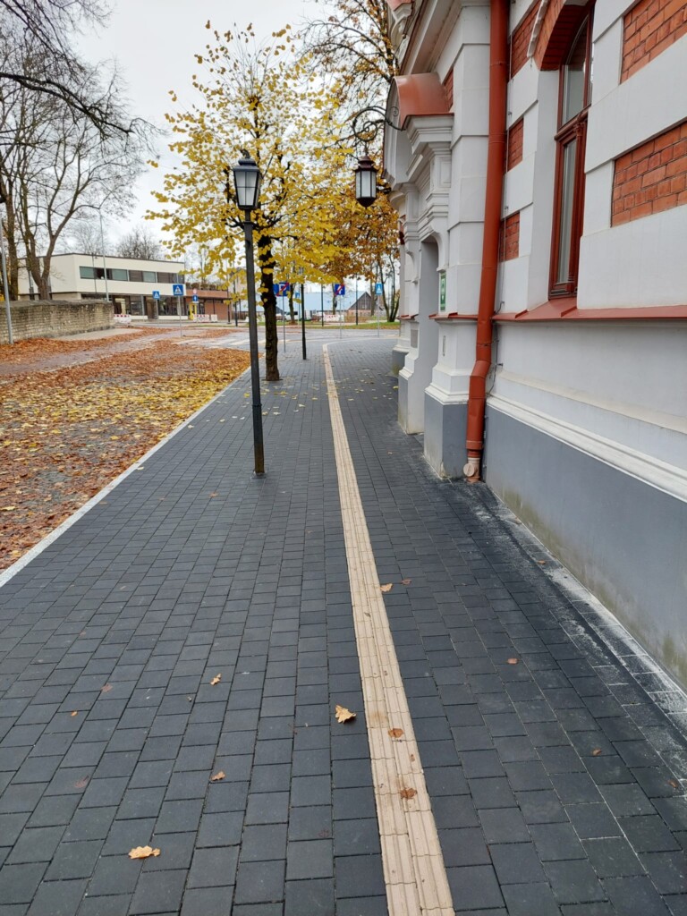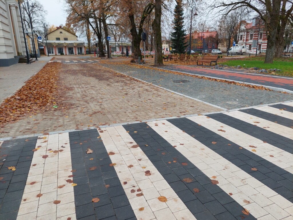 - Pieejamība un drošība: Laukumā integrēti taktīlie izstrādājumi, nodrošinot drošu un saprotamu pārvietošanos visām sabiedrības grupām, tostarp cilvēkiem ar redzes traucējumiem.